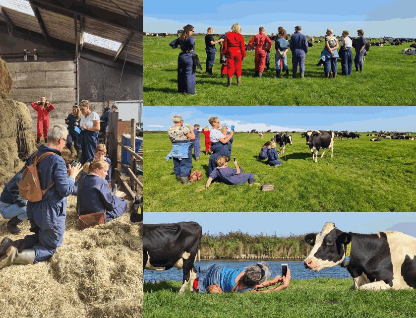 Vervolgens gaan we langs de kalfjes en de koeien om te knuffelen.